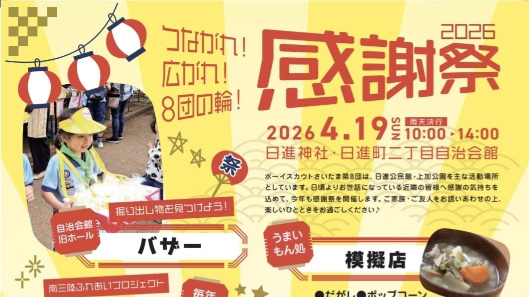 ボーイスカウトさいたま第8団が4月19日に「感謝祭」開催 日進神社でバザーや模擬店