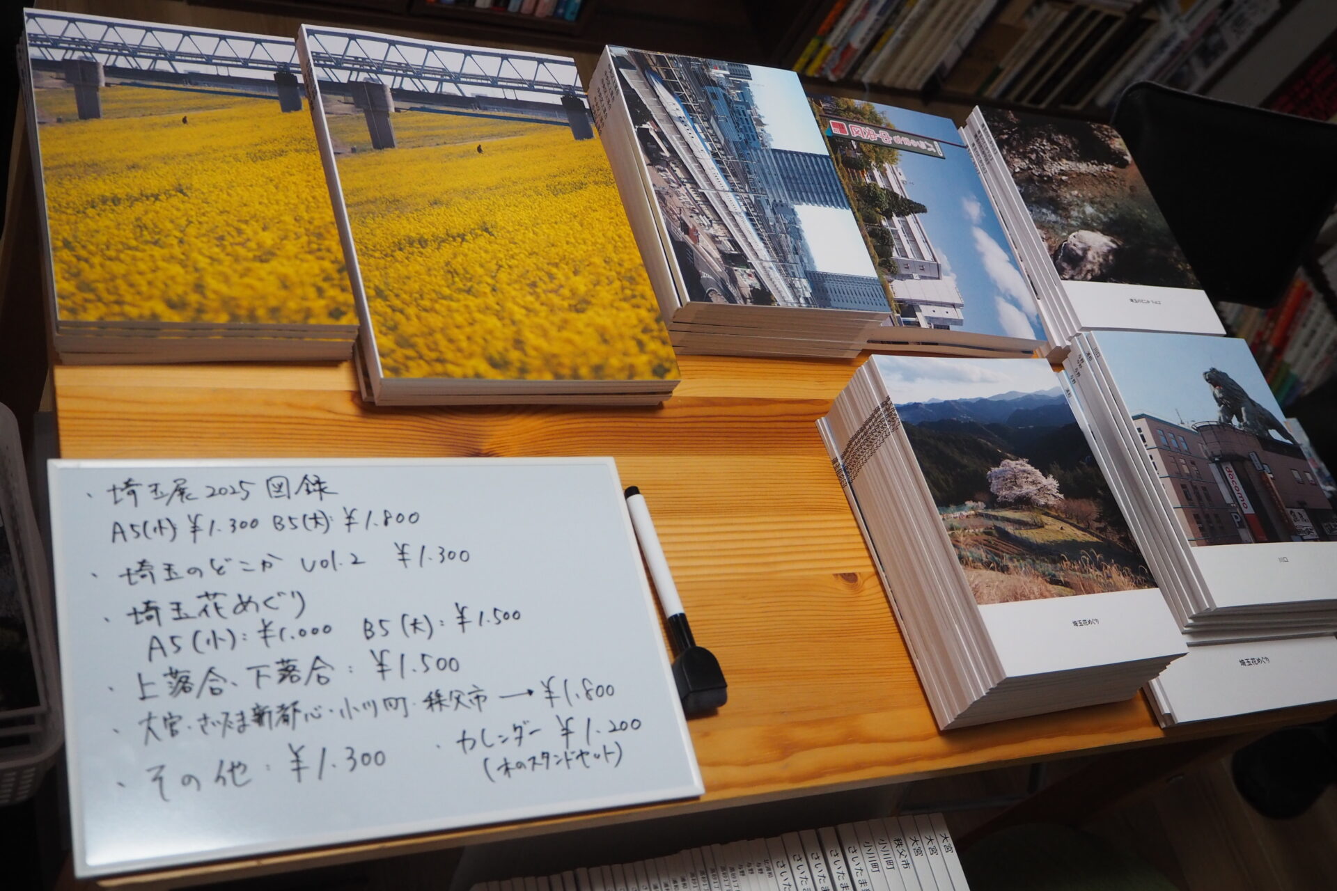 写真集は、今回新登場の「埼玉展2025 図録」「埼玉のどこか Vol.2」「埼玉花めぐり」「中央区下落合」のほかに、地域別の既刊も数十種取り揃えています!