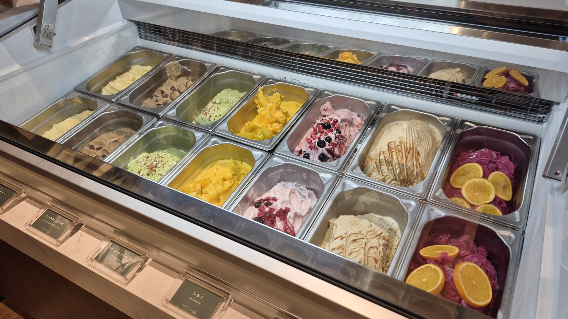 アイスは常時7種類ほどが並べられていて、フレーバーも定番のバニラやいちごから凝ったものまでさまざまです!